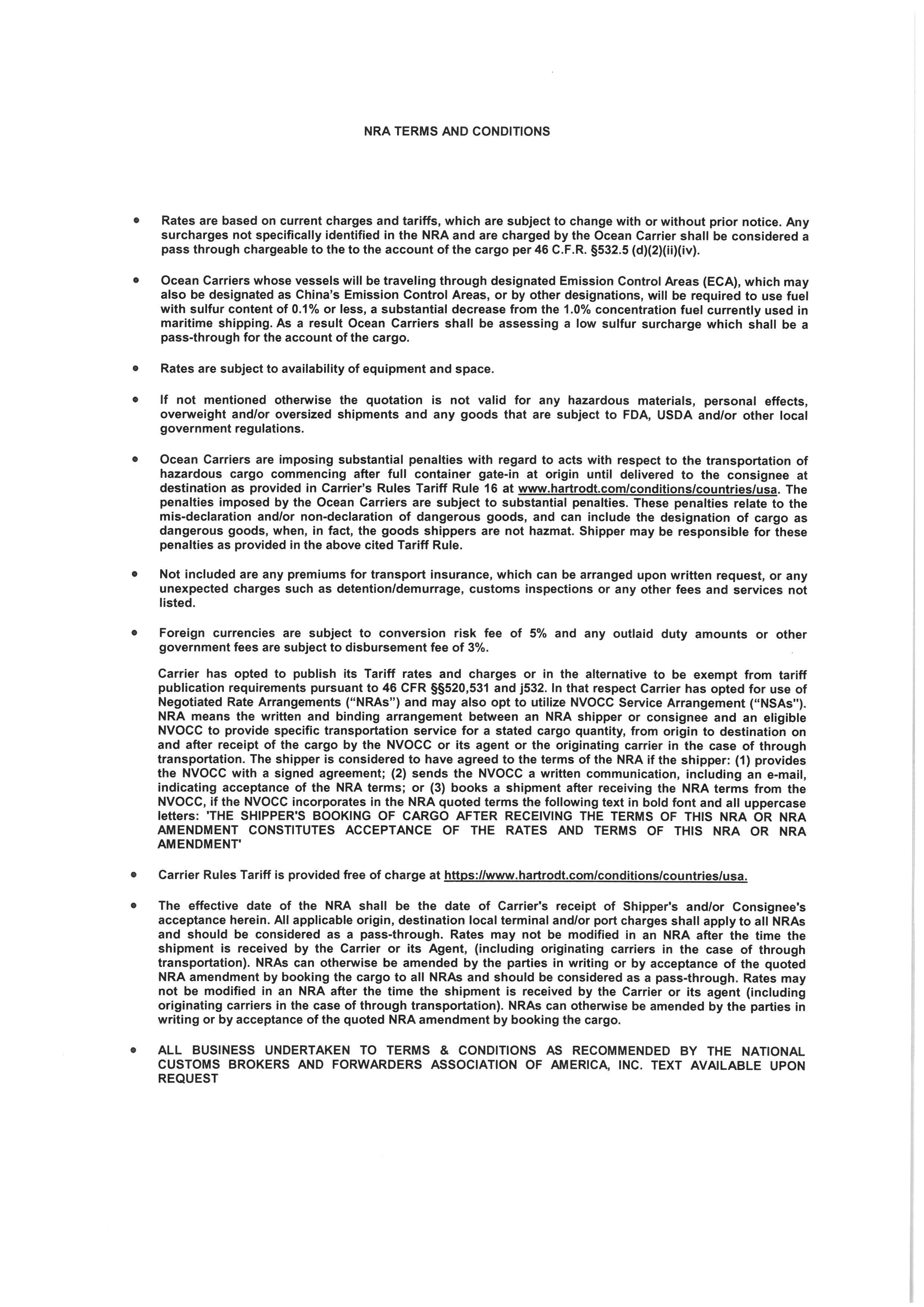 Cargo Consolidation Corporation NRA tariff no 007 dated 24/10/2018